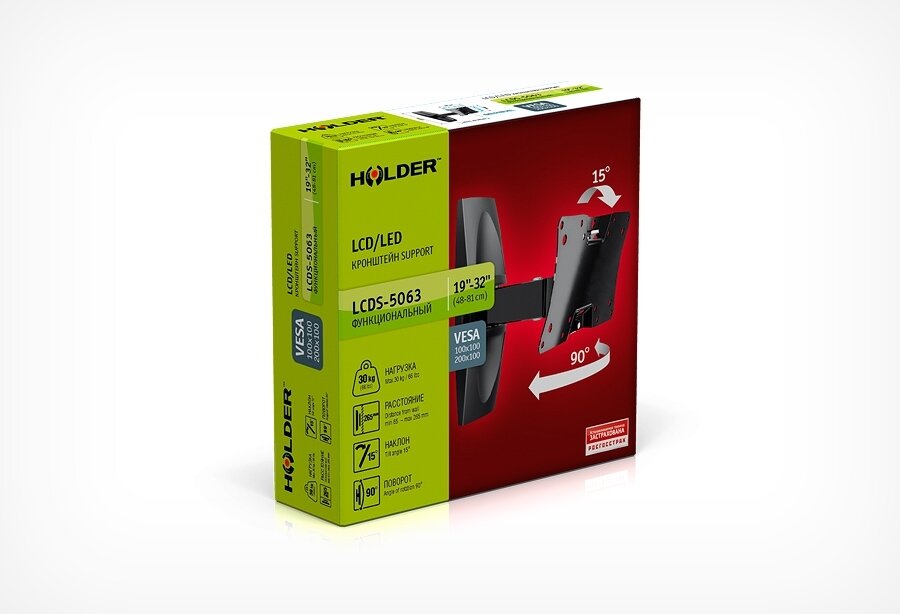 Кронштейн для телевизора Holder LCDS-5063, 19-32", настенный, поворот и наклон, черный [lcds-5063 black]