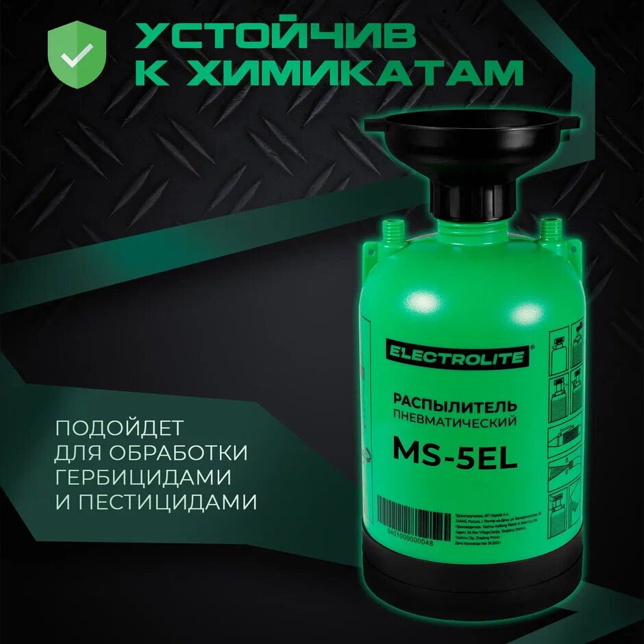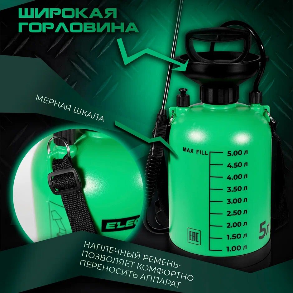 Ручные распылители Опрыскиватель ручной пневматический / Пульверизатор / Распылитель для воды / Опрыскиватель помповый ELECTROLITE MS-5EL ( 5 л, 0,36 л/мин, )