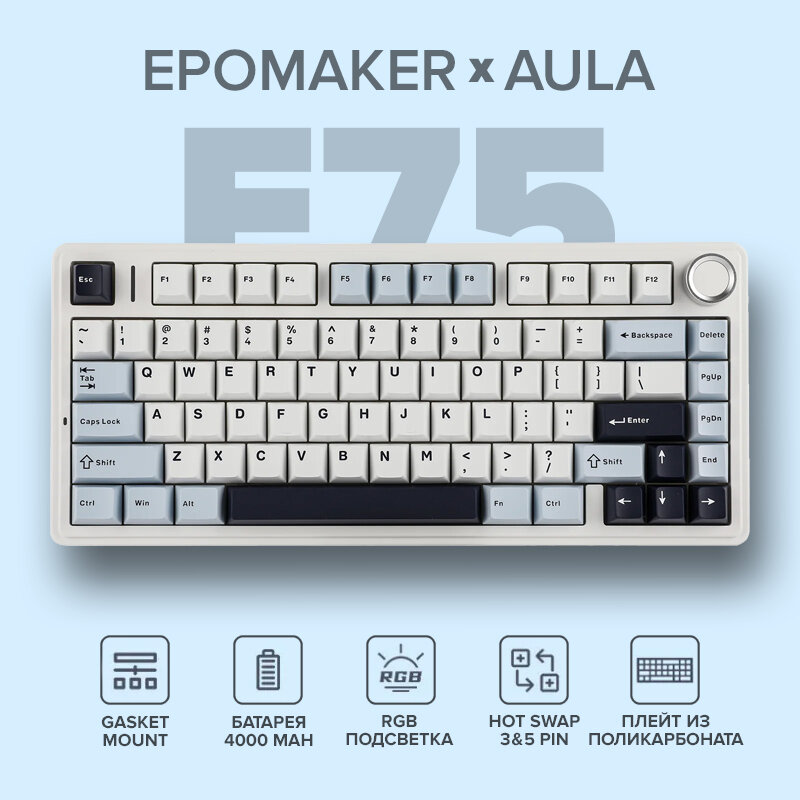 Беспроводная механическая клавиатура Epomaker x Aula F75 Blue Русская раскладка 8 811 ₽ Подробнее