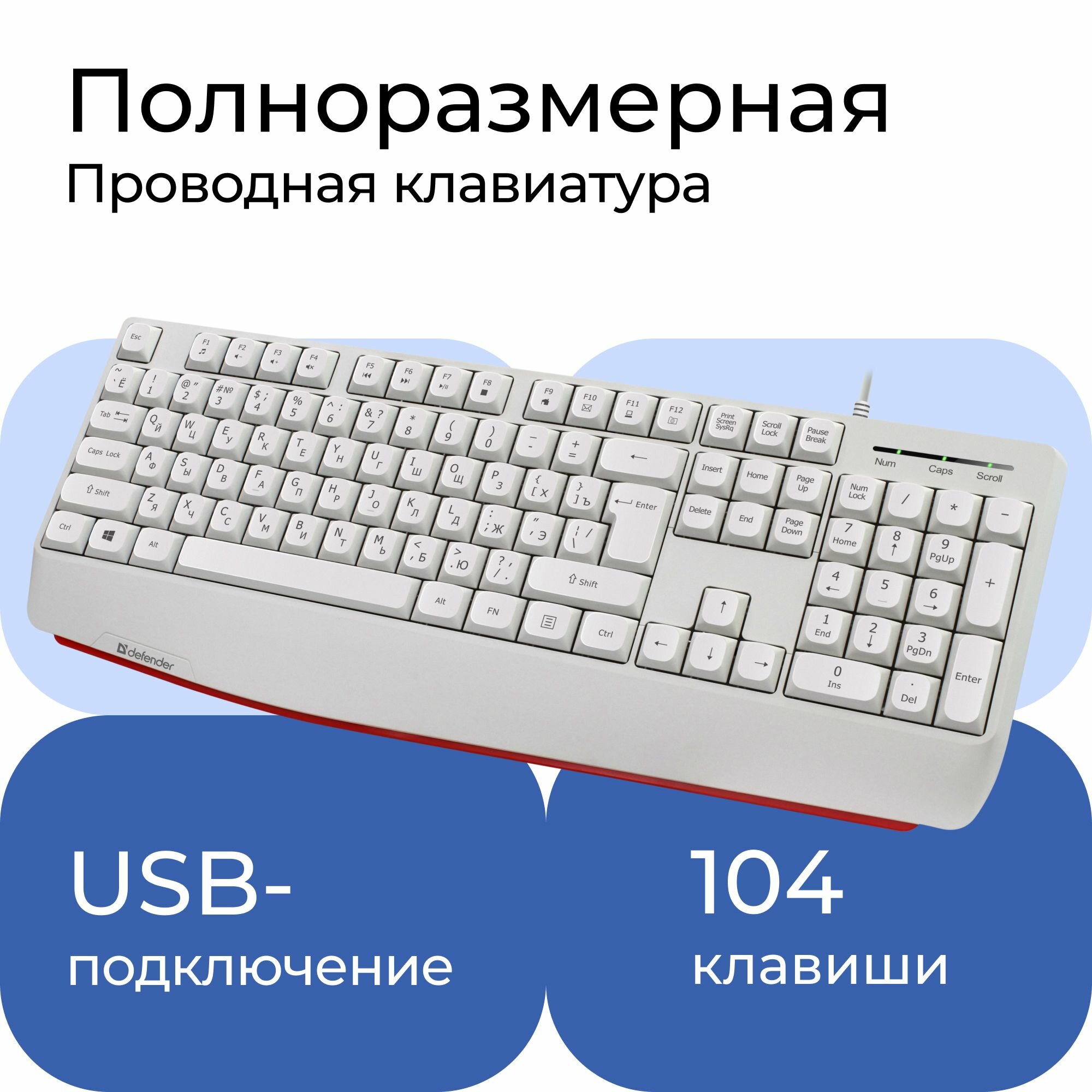 Проводная клавиатура Defender Atom HB-546 RU,белый,104+FN,1.8м 400 ₽ Подробнее