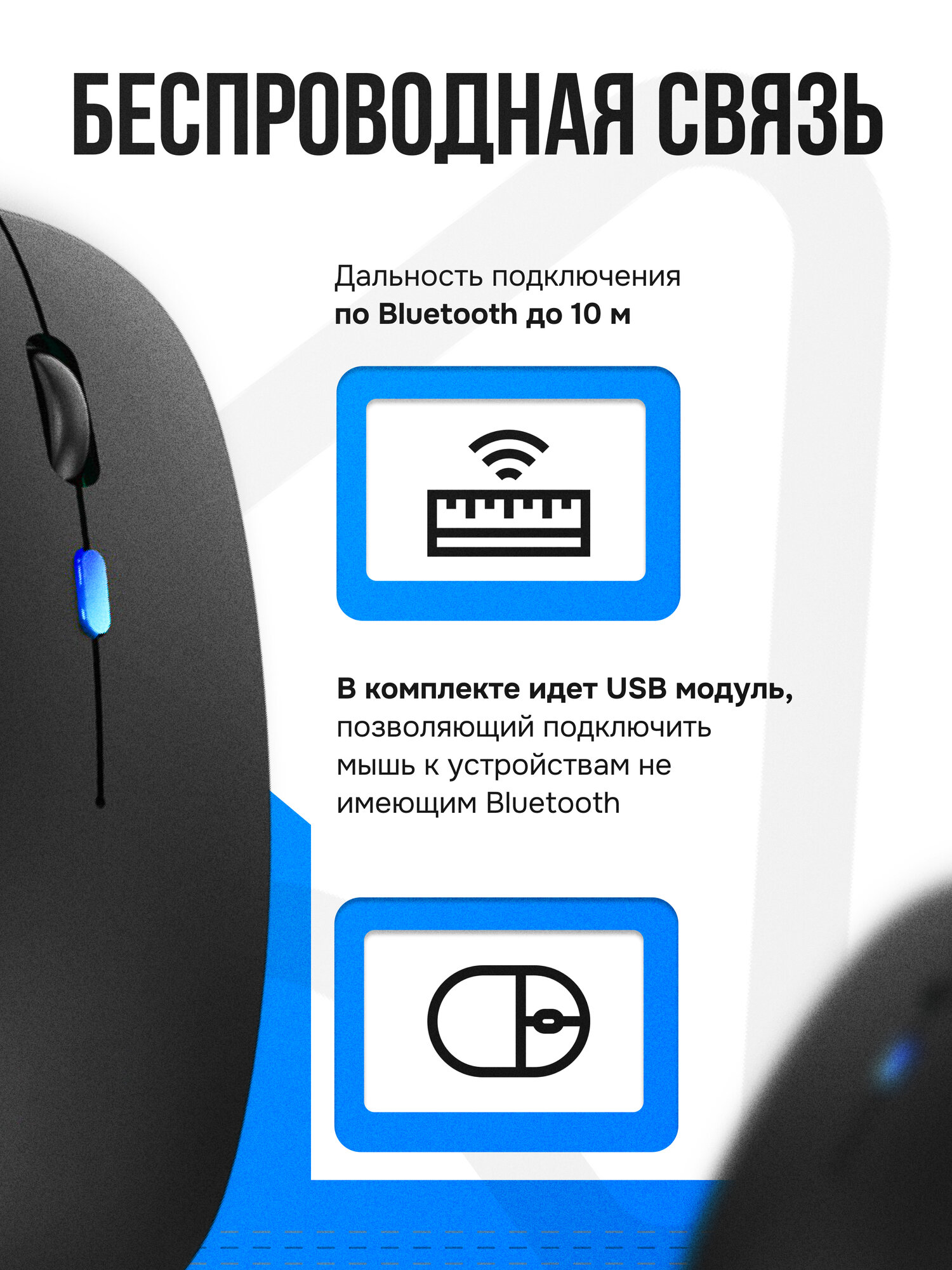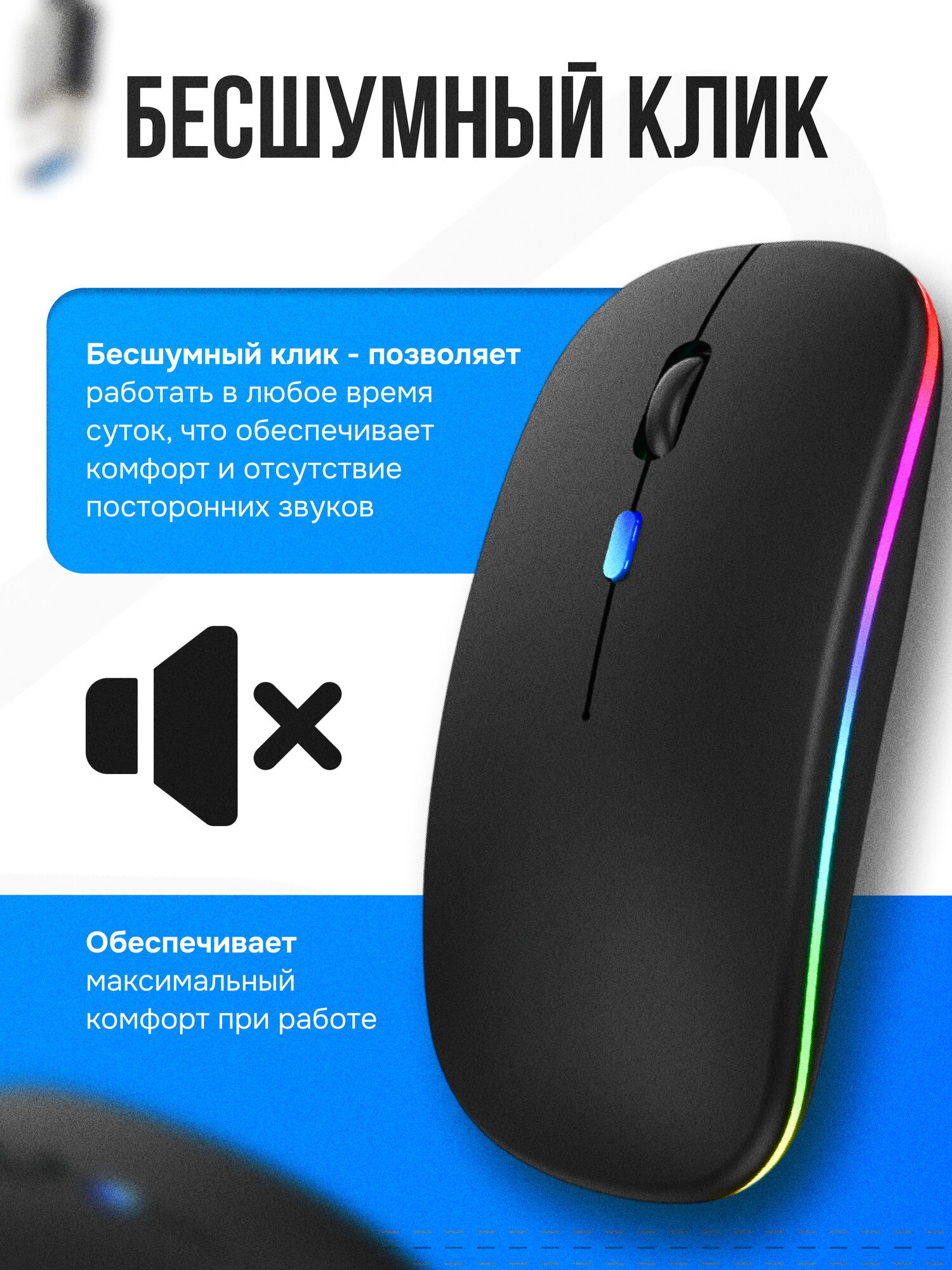 Мышки Беспроводная мышка для компьютера со встроенным аккумулятором/ Бесшумная блютуз компьютерная мышь с подсветкой RGB/ Bluetooth/ WiFi 2.4 гц. Лазерный