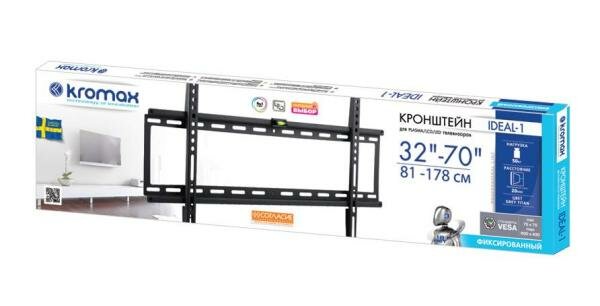 Кронштейн Kromax IDEAL-1 чёрный 32-90" max.55кг VESA 600x400 фиксированный