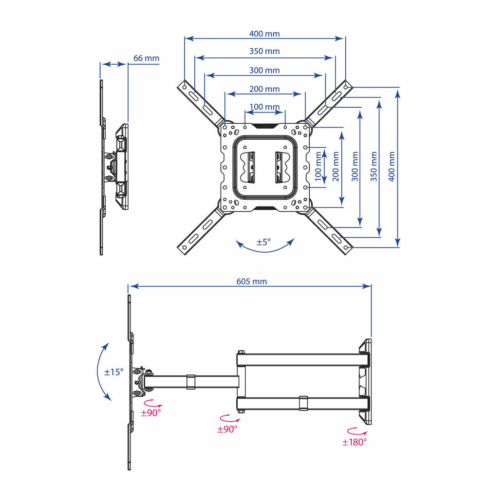 Кронштейн Kromax DIX-18 black (Наклонно-поворотный для LED TV 22"-55", 5 ст. свободы, VESA 100x100/200X100/200X200/300x300/400x200/400x400)4 2 764 ₽ Подробнее