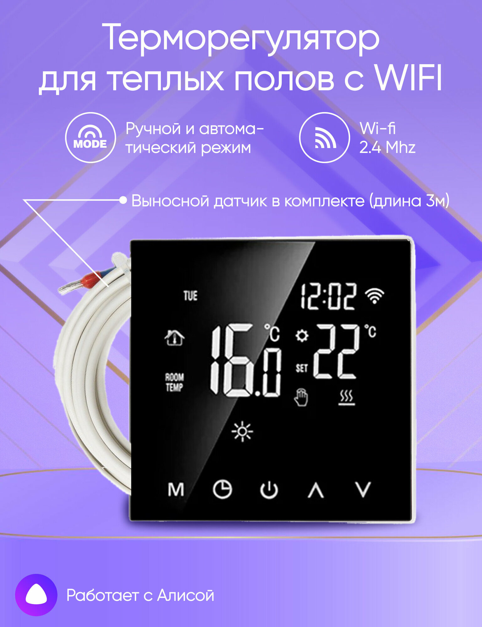 Терморегуляторы и автоматика Терморегулятор Manhot (Wi-Fi) Tuya, SmartLife. Работает с Алисой.