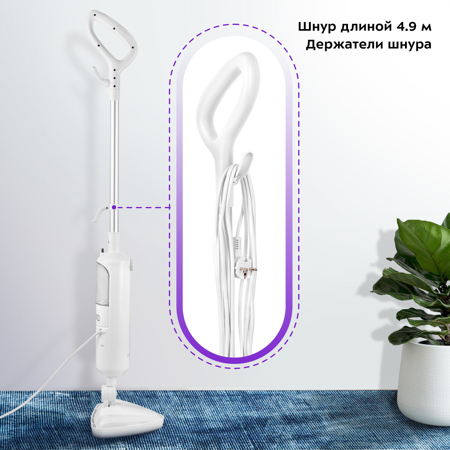 Паровая швабра KITFORT KT-1004-4, 1500 Вт, 1 бар, объем 0,35 л, белая/фиолетовая