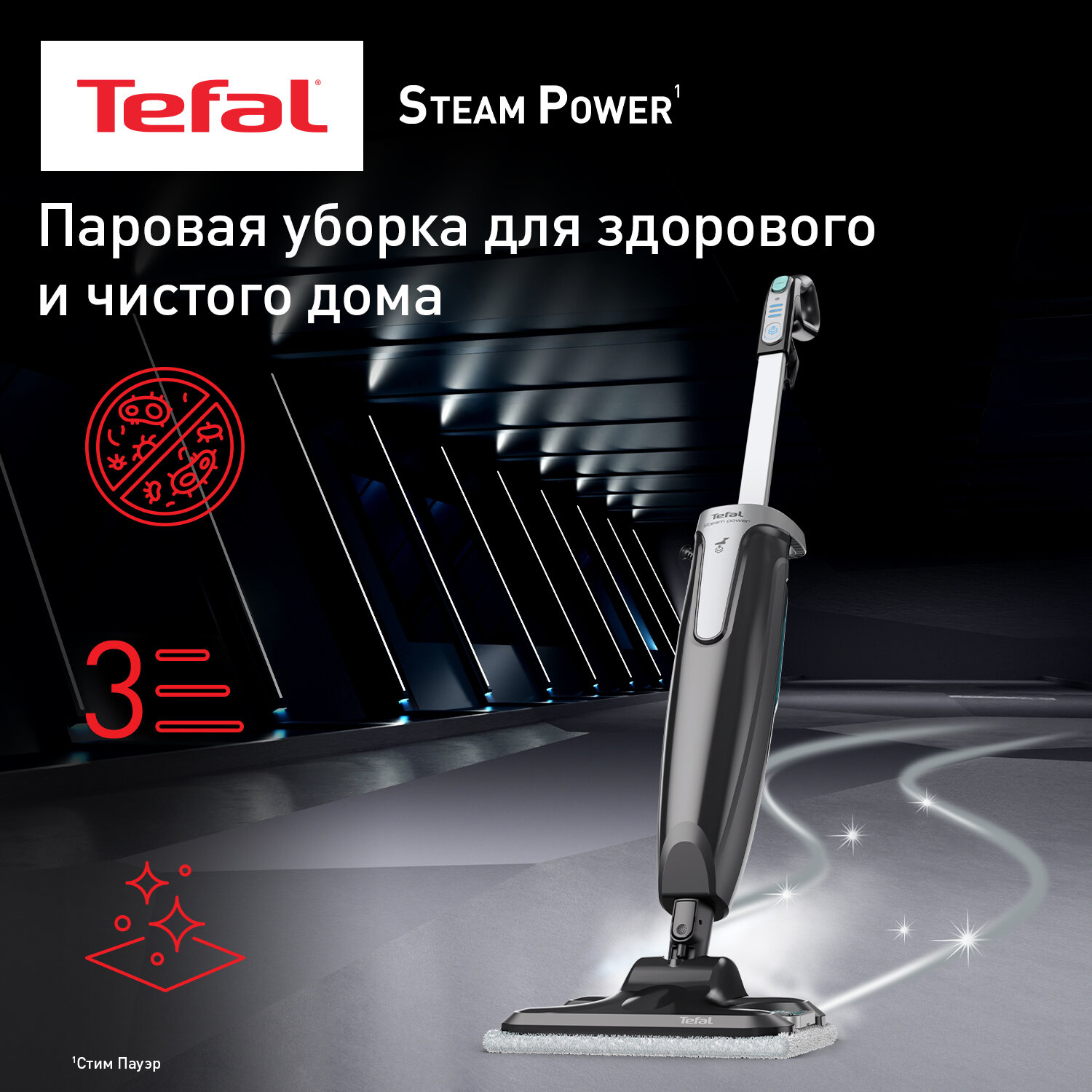Пароочистители Паровая швабра Tefal Steam Power VP6555RH, черный, мощность 1200 Вт, длина шнура 7 м, объем резервуара для воды 0.6 л
