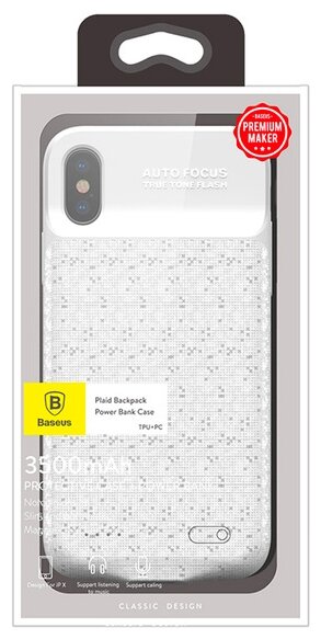 Лучшие цены. Чехол-аккумулятор Baseus Plaid Backpack Power Bank для iPhone X обеспечивает защиту устройства от царапин, потёртостей и других повреждений, а также позволяет увеличить время работы смартфона благодаря встроенному аккумулятору ёмкостью 3500 мАч. Baseus Plaid Backpack Power Bank выполнен в стильном дизайне и имеет прочную конструкцию, изготовленную из поликарбоната и термополиуретана. Чехол-аккумулятор обеспечивает свободный доступ ко всем функциональным кнопкам и разъёмам. Магазины в вашем городе.