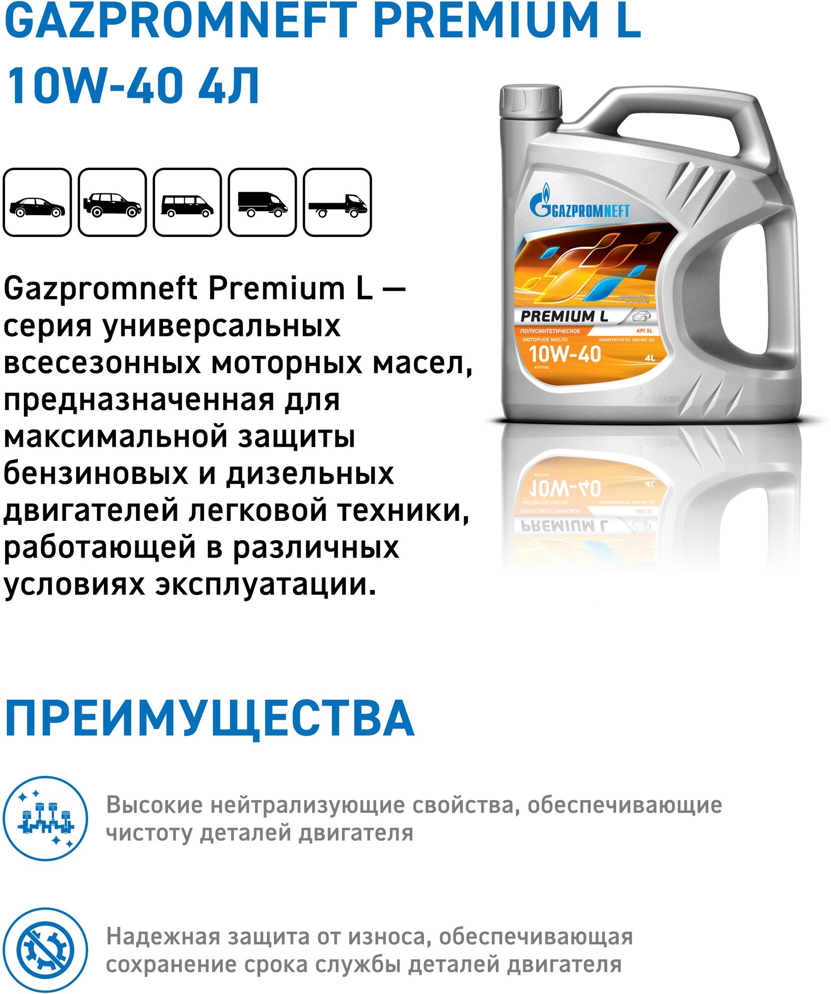 Моторные масла Масло моторное Gazpromneft Premium L 10W-40 канистра 4л +1 л