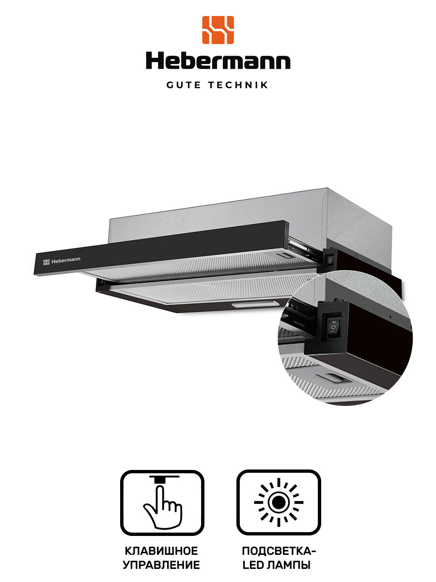 Вытяжка Кухонная вытяжка встраиваемая Hebermann HBFH 50.1 B; 50см, клавишное управление, отделка: окрашенная сталь, освещение: LED лампа