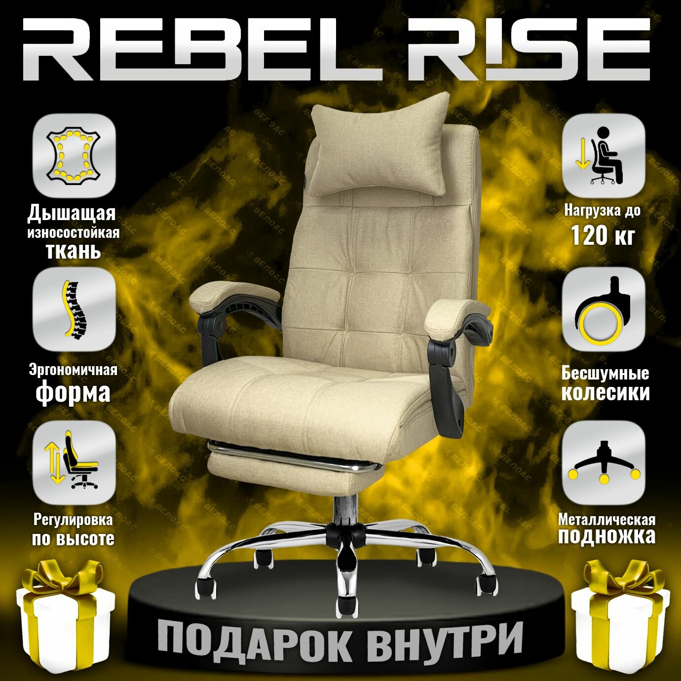 Компьютерные кресла Кресло компьютерное REBEL RISE для руководителя, с подножкой, из прочной ткани, хаки