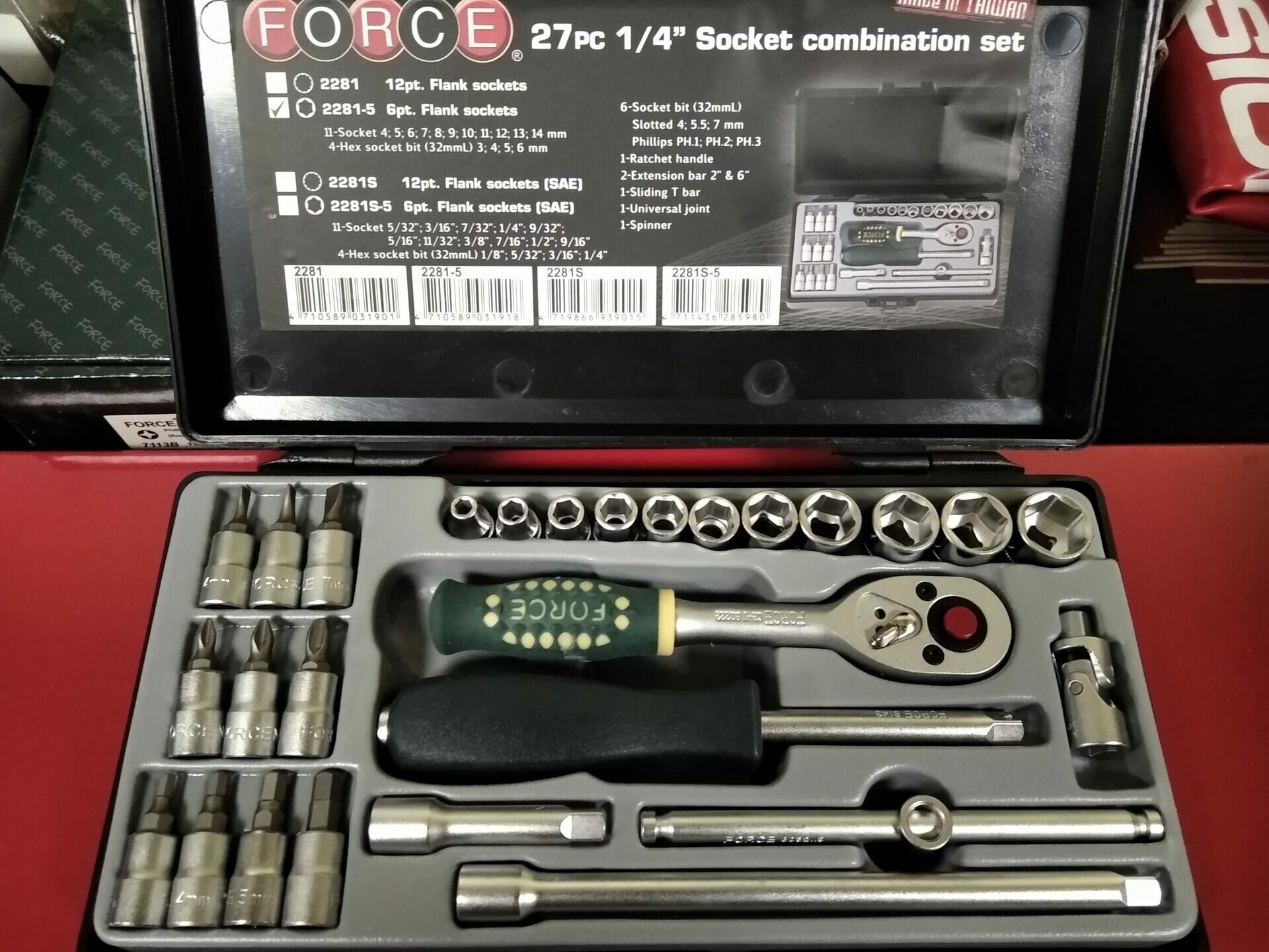 Наборы инструментов 1/4" Н-р инструмента 27 пр., 6-гр. (4-14мм) FORCE 2281-5