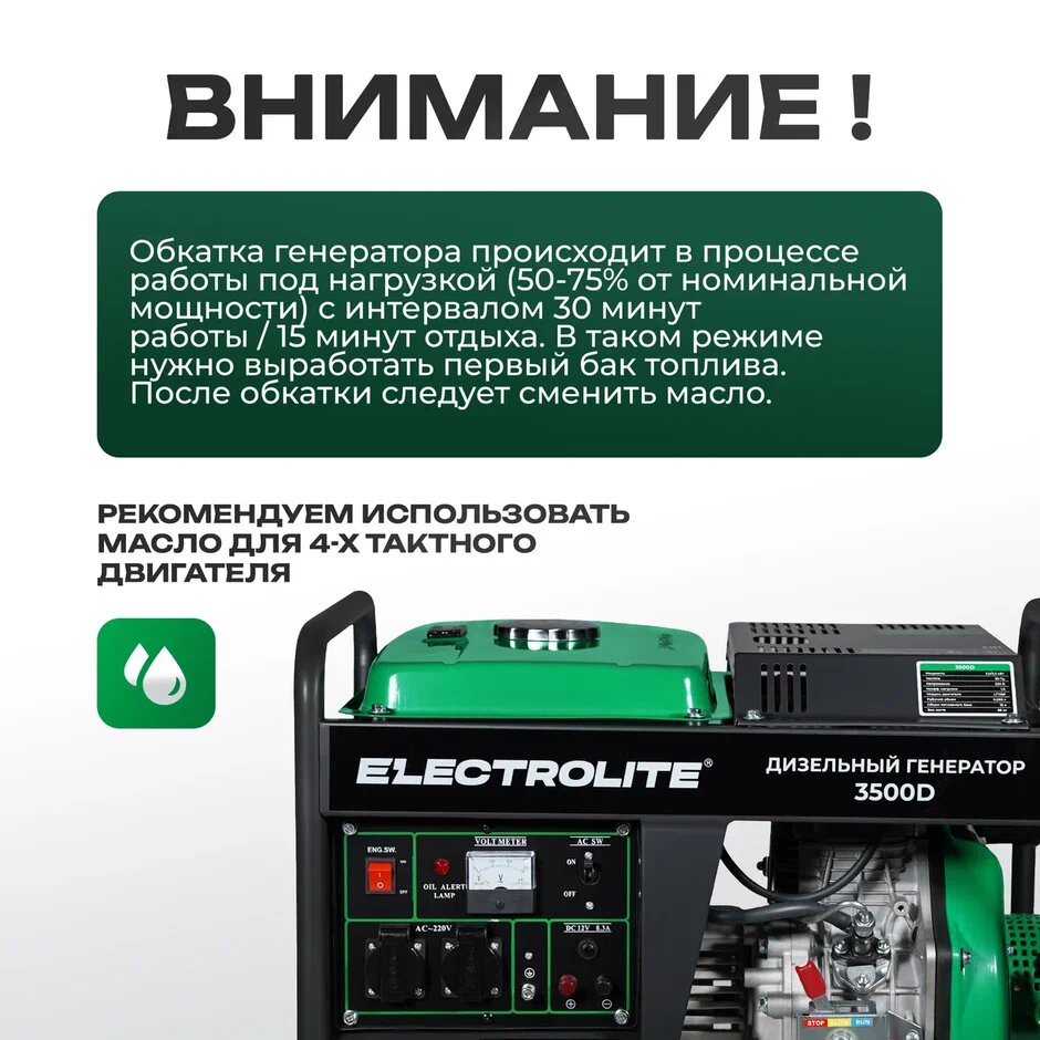 Генератор дизельный / Электрогенератор / Дизельный генератор / Электростанция Electrolite 3500D (4,375 кВа пиковая нагрузка , 220 В / 12 В, 3 / 3,5 кВт, 50 Гц, 7 л. с, ручной стартер ) 67 345 ₽ Подробнее