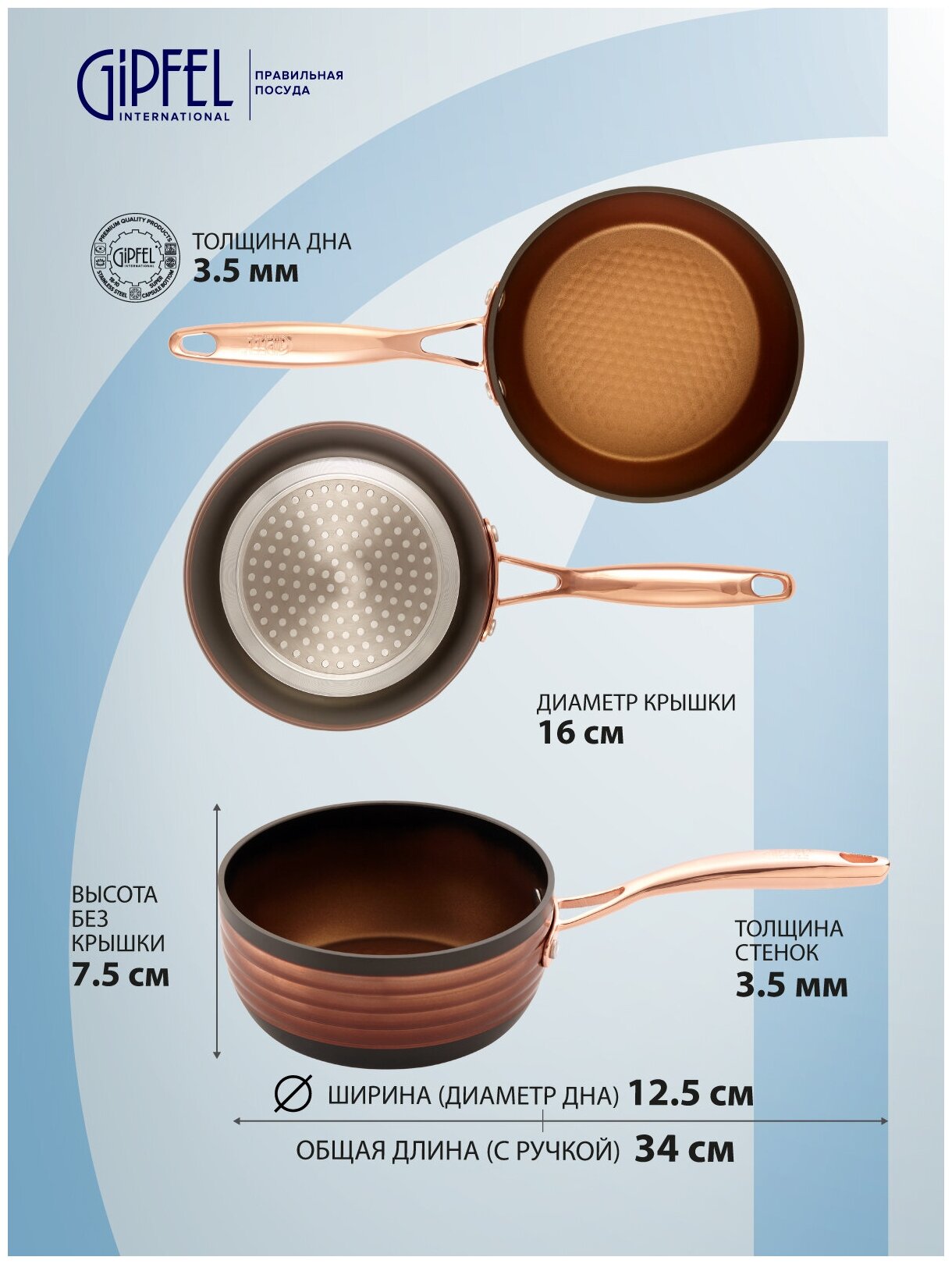 Кастрюля Ковш VERSAL GOLD 2719 GIPFEL 16х7,5см/1,5л c ручкой из нержавеющей стали