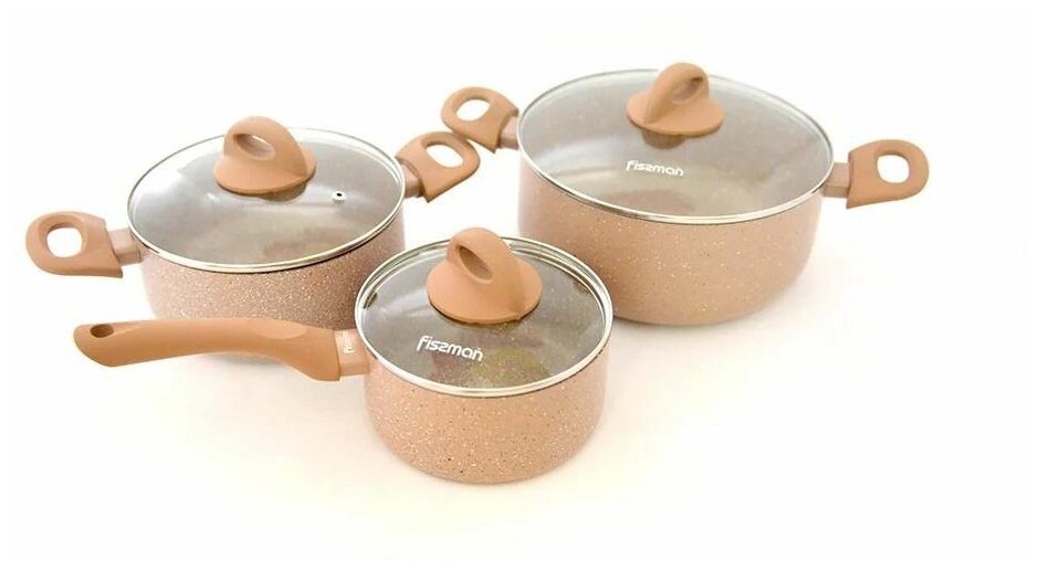 Кастрюля FISSMAN Набор посуды алюминиевый LATTE 6 пр. (Ковш -1,6л; Кастрюли: 2,8л / 4,9л)