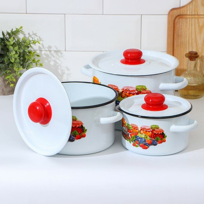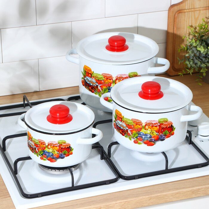 Стальэмаль Набор посуды "Варенье", 3 шт: 1,5 л, 2,9 л,4,5 л, цвет белоснежный