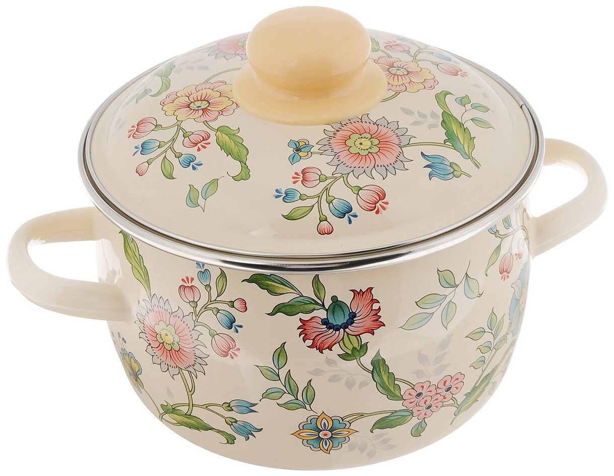 Набор кастрюль эмалированная сталь Стальэмаль Луговые цветы с крышкой, 1.5 л, 2 л, 4 л