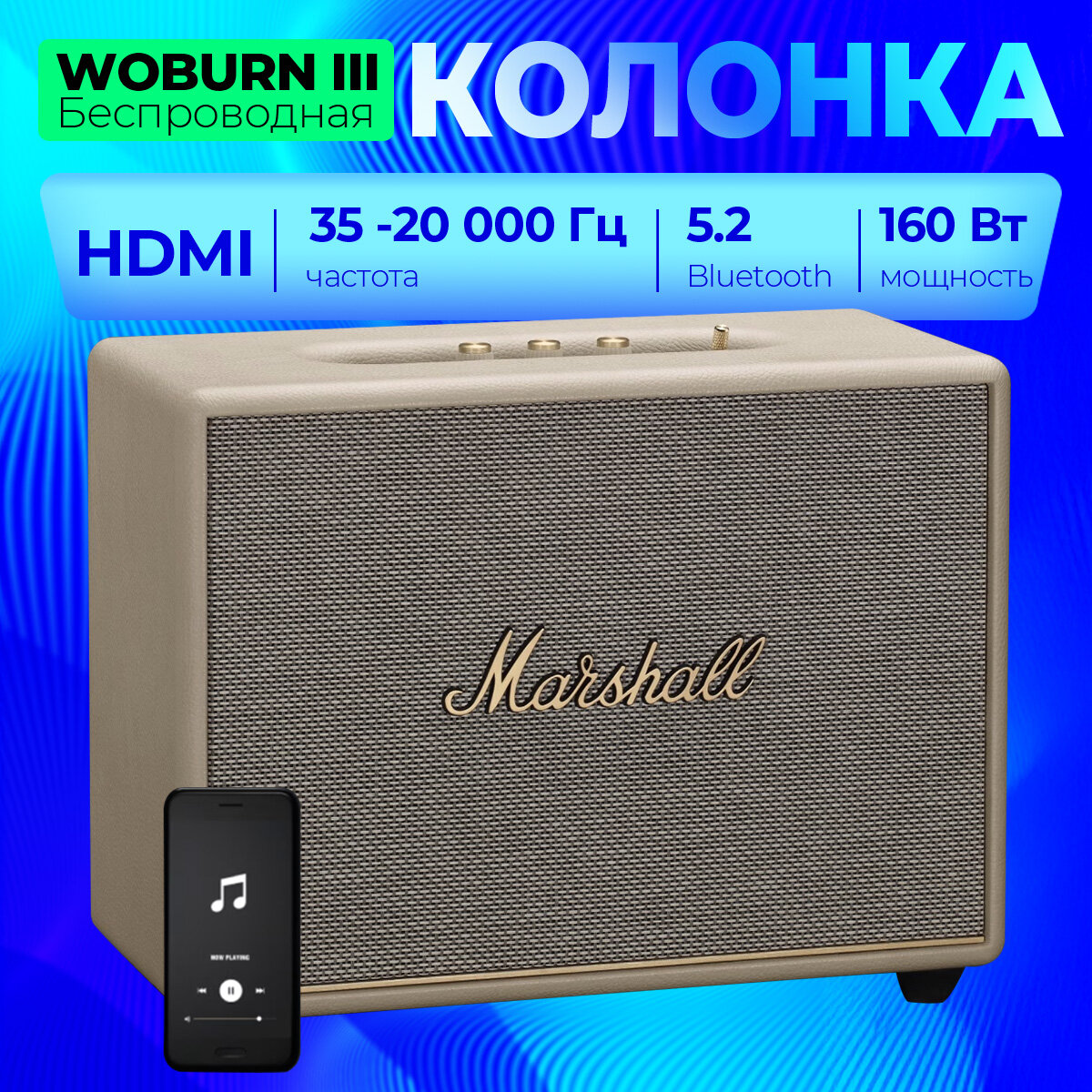 Портативная акустика Marshall Woburn III, 150 Вт, EU, Кремовый