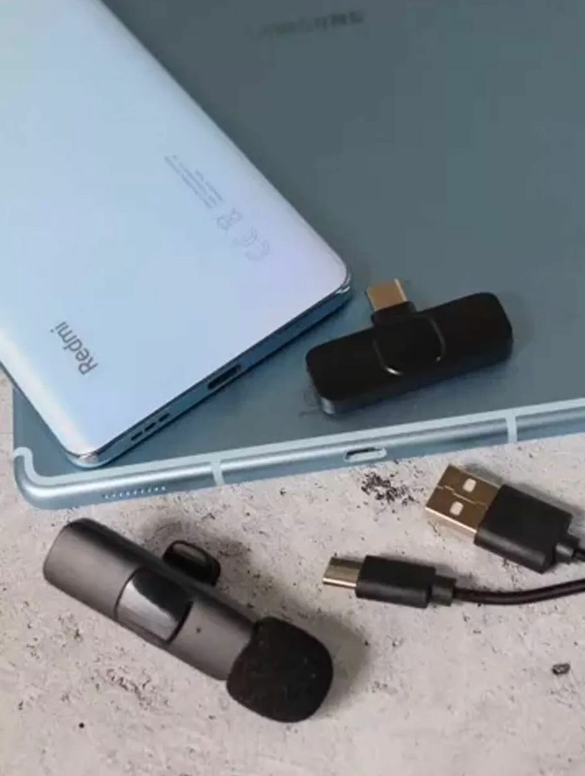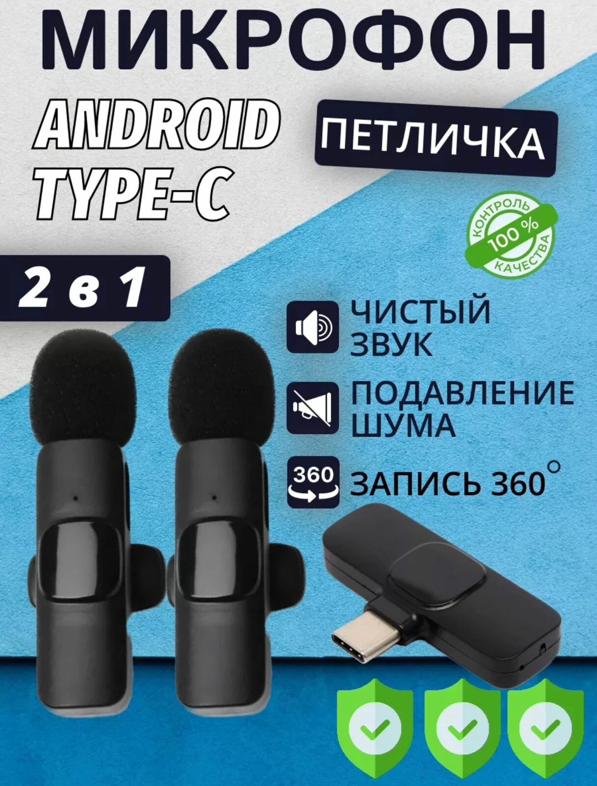 Микрофоны Комплект из 2 беспроводных петличных микрофонов K9C duo с шумоподавлением для телефона, планшета, ноутбука, камеры / штекер Type-C / черные
