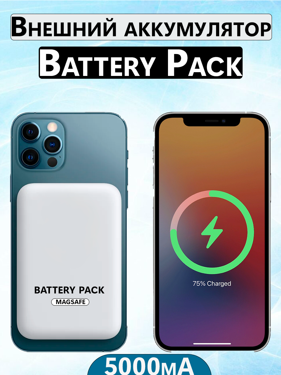 Powerbank Power Bank MagSafe Magnetic Battery Pack 5000 мА/ч, внешний магнитный аккумулятор, беспроводная зарядка для Iphone