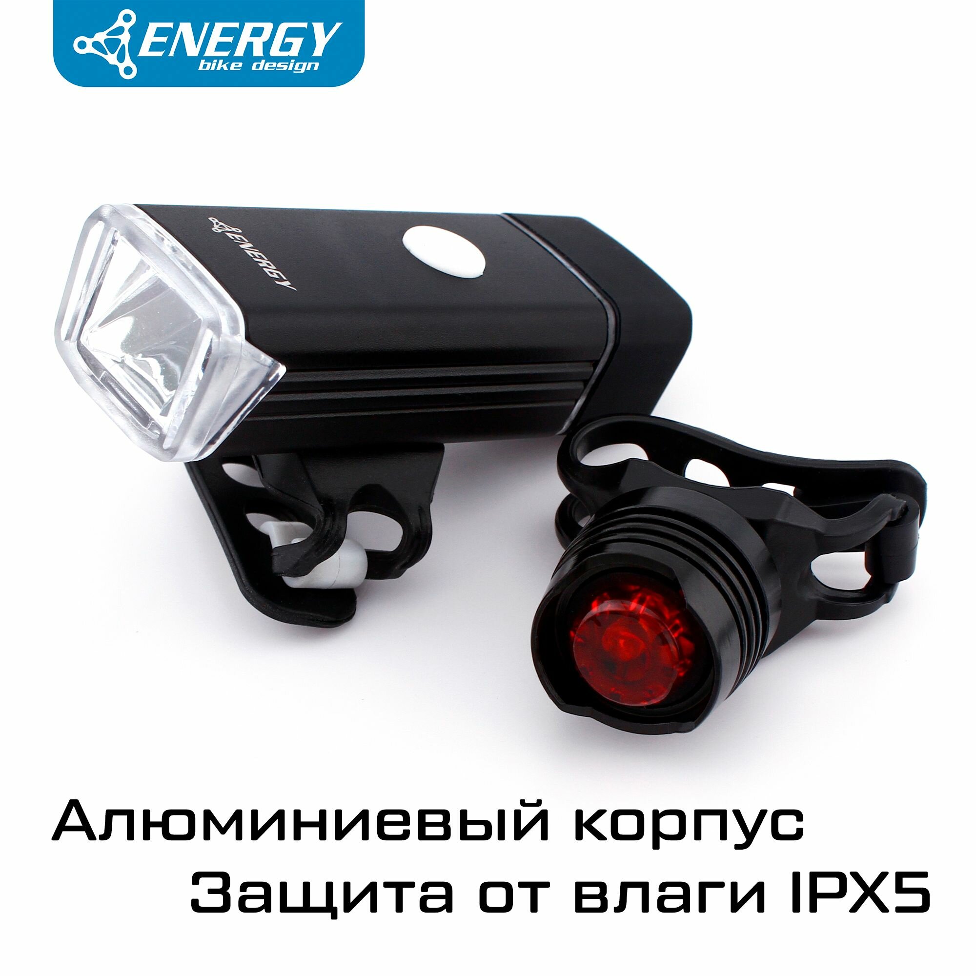 Велофонари Комплект фонарей Energy cree led, 500 lumen, 4 режима, USB, алюминиевый корпус, чёрный, батарея 400mAh