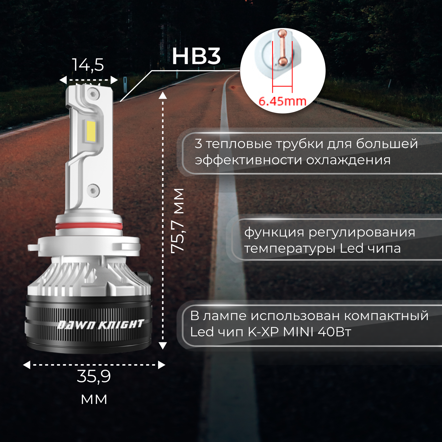 Автолампы K8C HB3 светодиодные авто лампы 4300K DAWNKNIGHT 80W/Обновление K7C/ 12v 2шт в компл. / Длительный срок службы