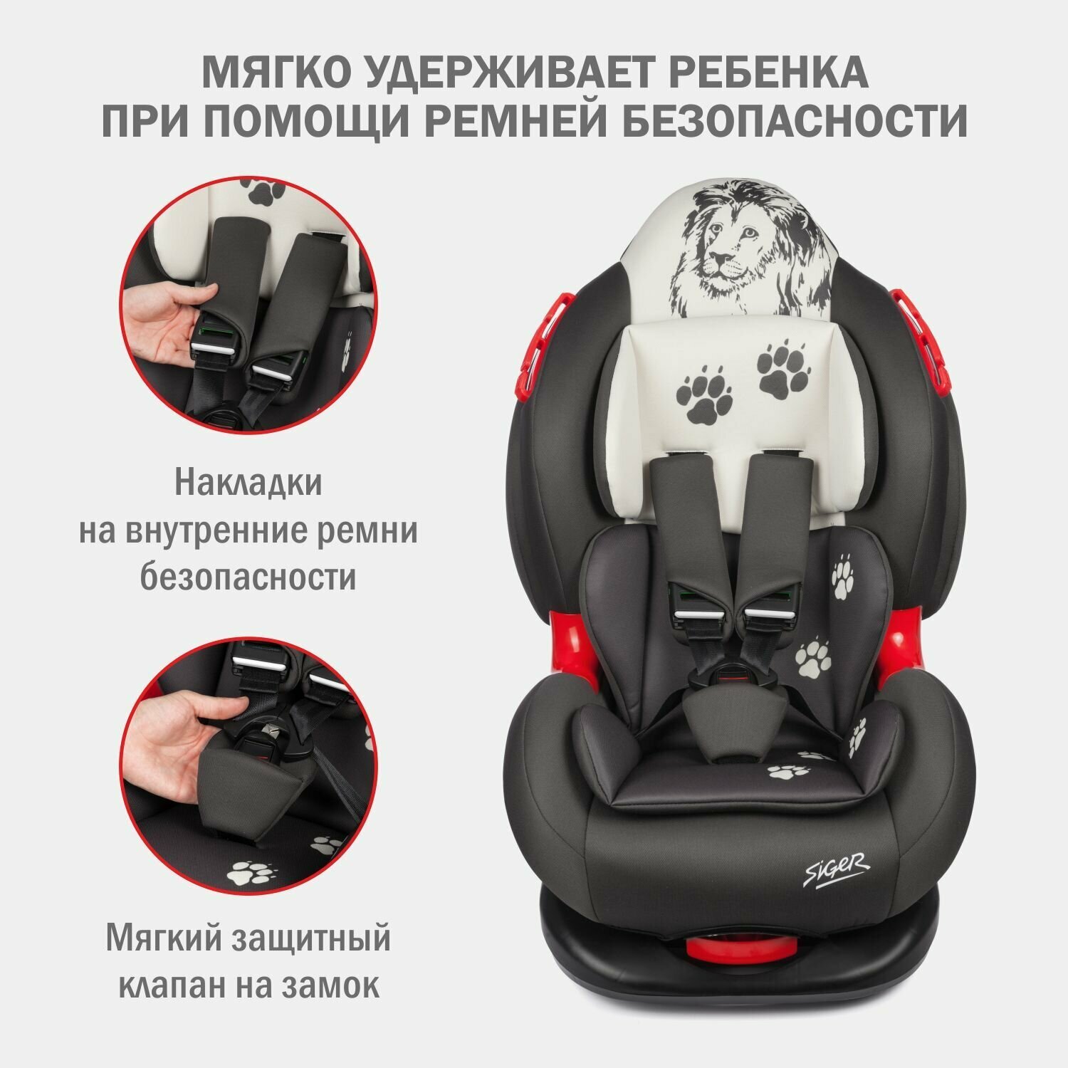 Автокресло Siger ''Кокон ISOFIX'' гр. I/II 9-25 кг 1-7 лет серо-бежевый лев KRES3596