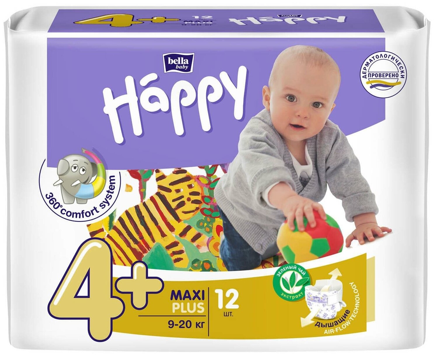 Bella Baby Happy подгузники maxi plus 4+ (9-20 кг), 12 шт.