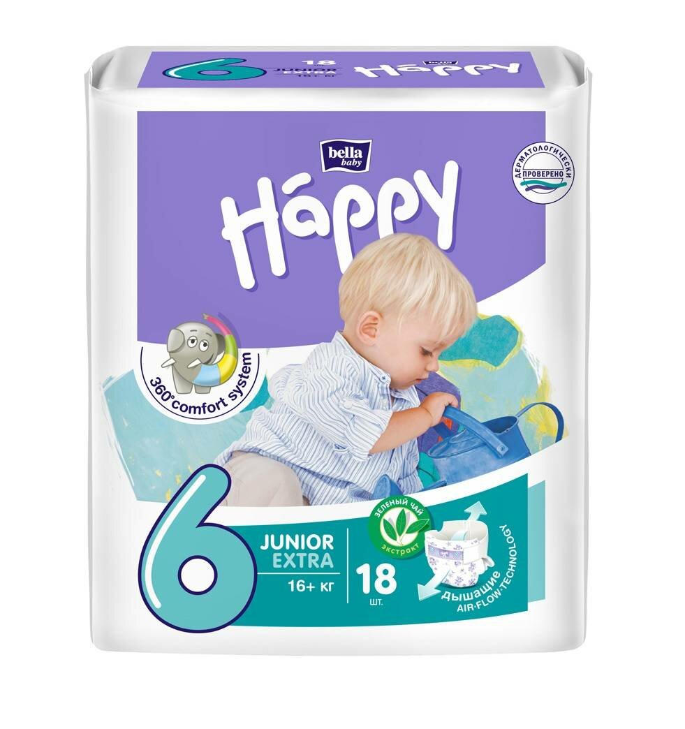 Bella Baby Happy подгузники junior extra 6 (16+ кг), 18 шт.