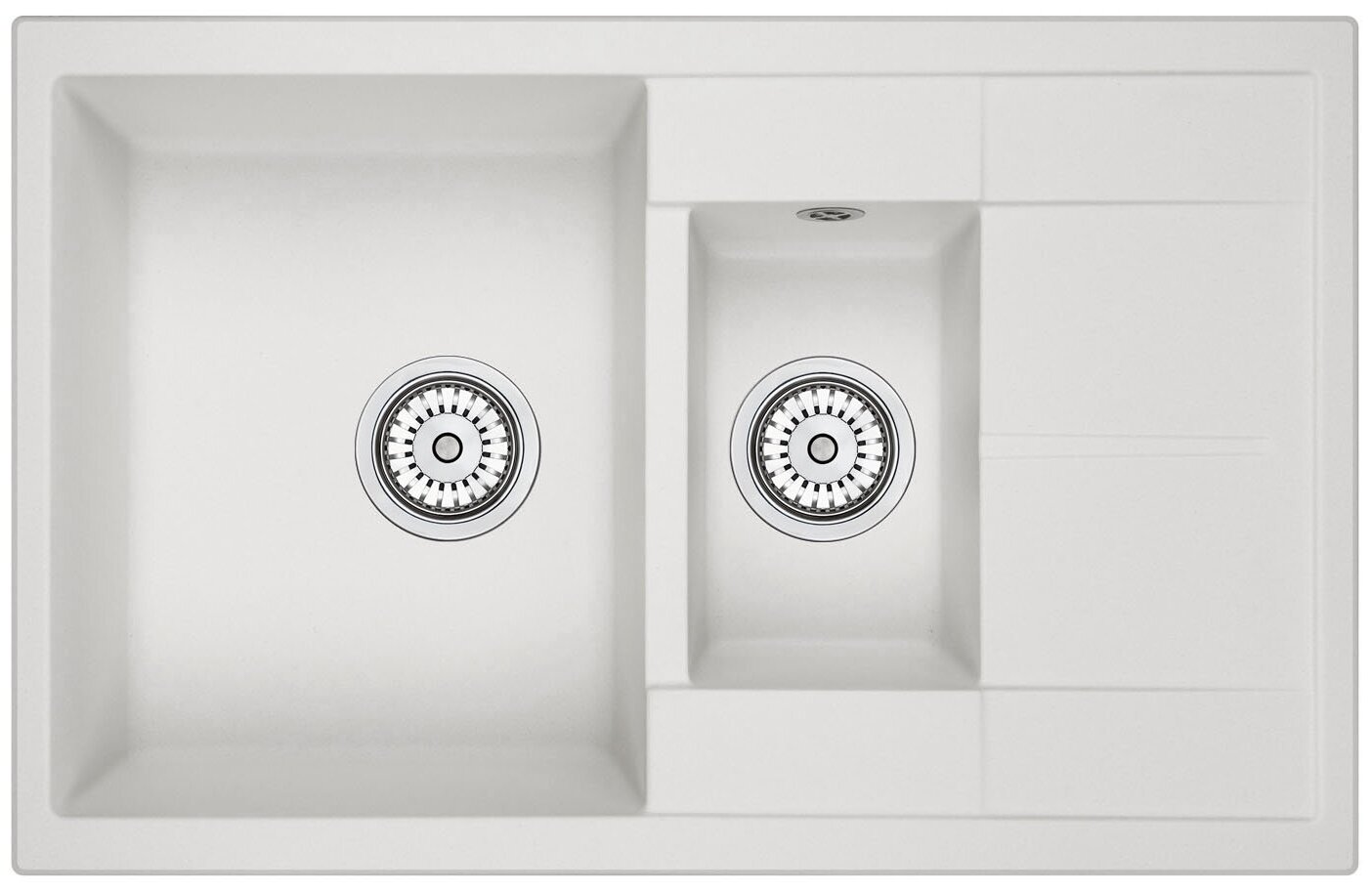 Кухонная мойка кварцевая Granula GR-7802 двухчашевая с крылом, врезная, чаша 350x425, 170x280, цвет арктик (7802wh) 13 335 ₽ Подробнее