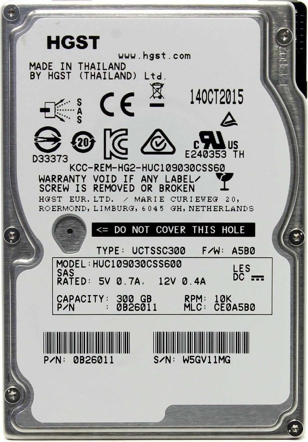 Жесткий диск HGST Ultrastar C10K900 300 Гб (HUC109030CSS600) SAS 2.0