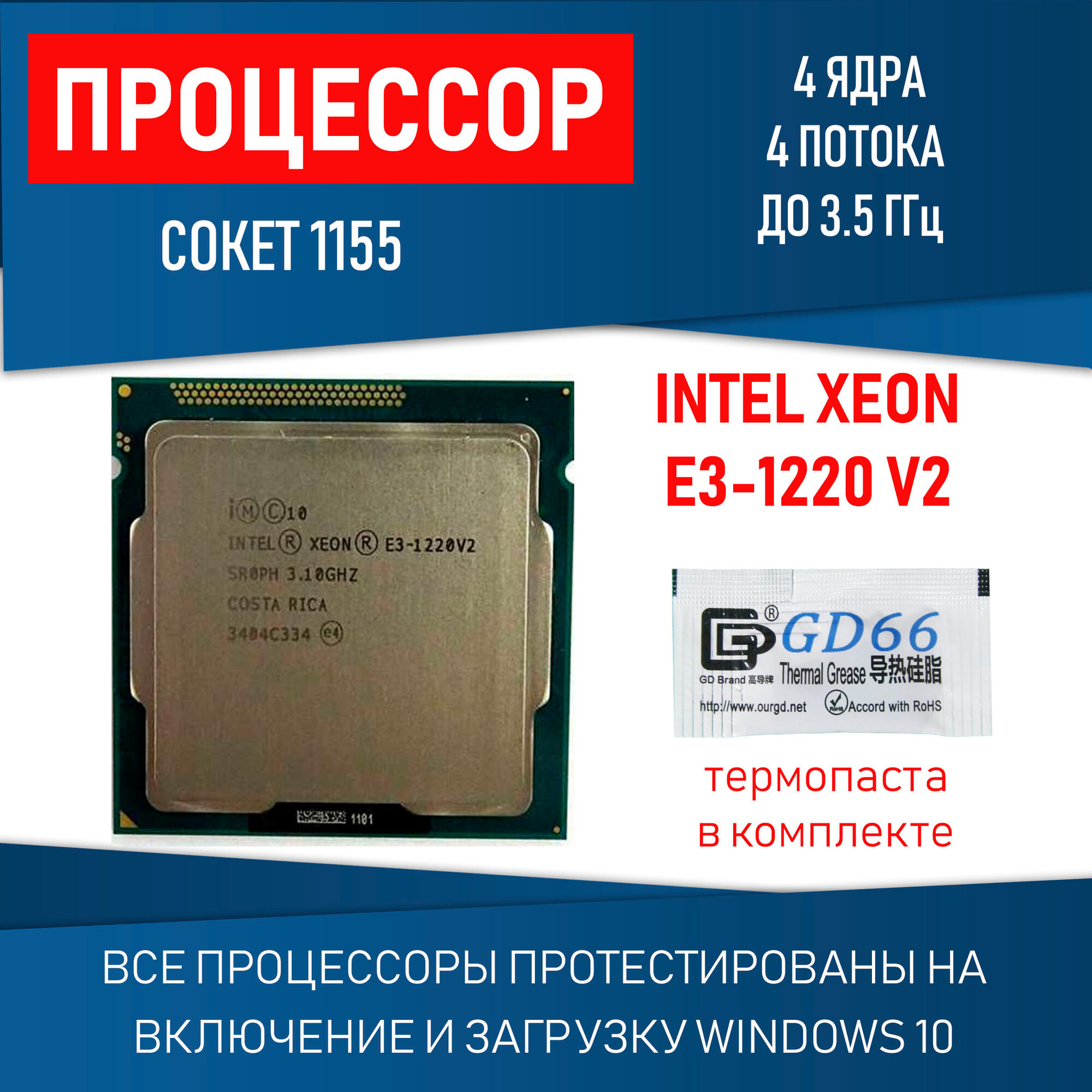 Процессор Intel Xeon E3-1220V2 сокет LGA1155 4 ядра 4 потока 69 Вт OEM