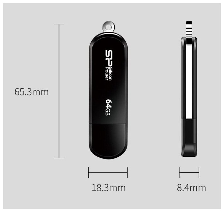 Флеш накопитель 64Gb Silicon Power LuxMini 322, USB 2.0, Черный