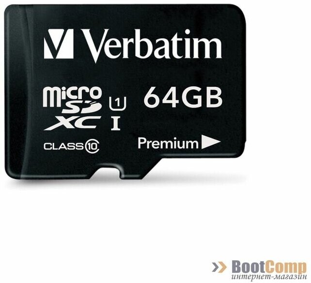 USB-флешки Карта памяти Verbatim Premium microSDXC 64GB UHS-I U1 V10, R 90 МБ/с с адаптером