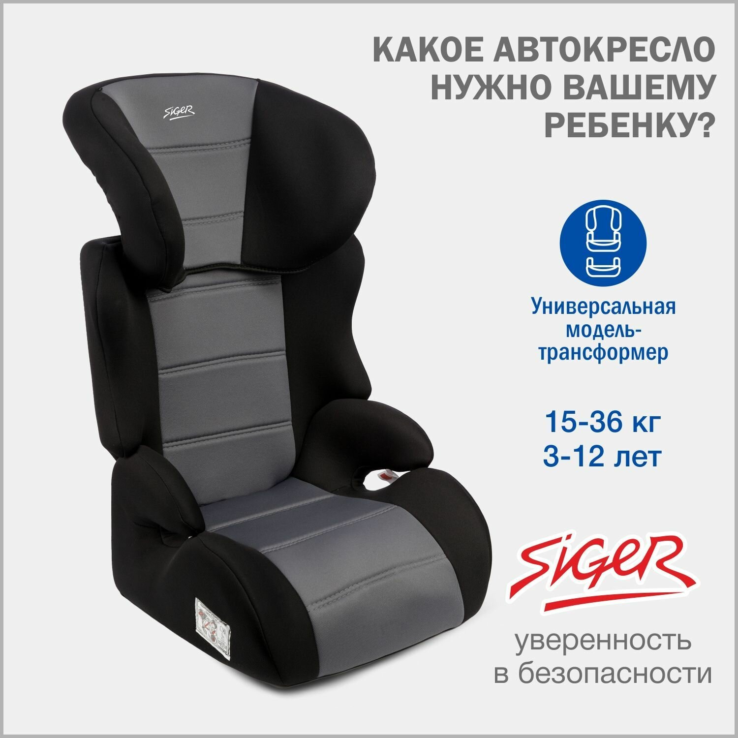 Удерживающее устройство для детей SIGER "Смарт" серый, гр. II/III, 15-36 кг, 3-12 лет