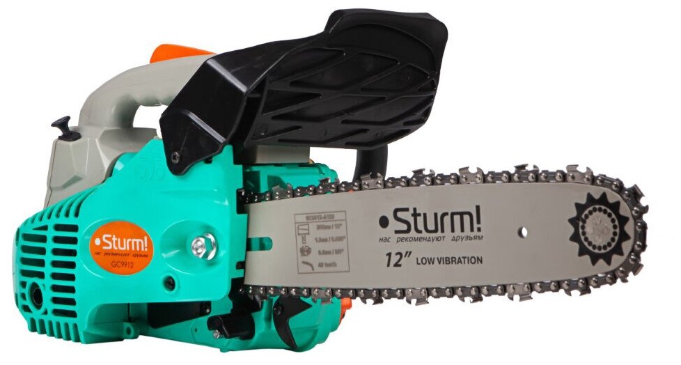 Бензопила Sturm GC9912 , 1,2 кВт, 305 мм, шаг цепи 3/8, тормоз цепи, праймер!