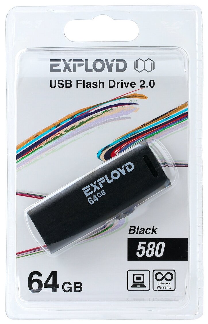 Флеш-накопитель EXPLOYD 64GB-580 64 Гб, черный