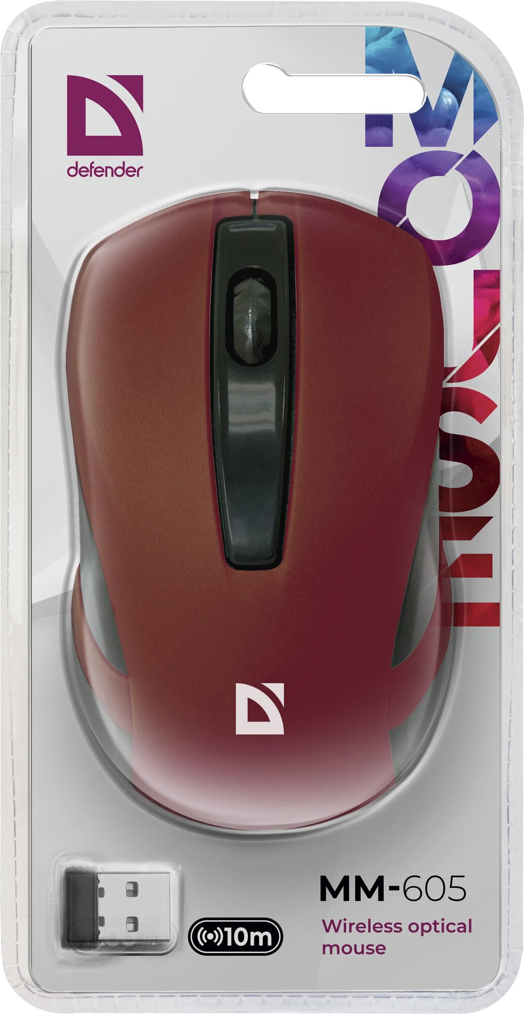 Defender Wireless Optical Mouse (MM-605 Red) (rtl) USB 3btn+Roll (52605) .