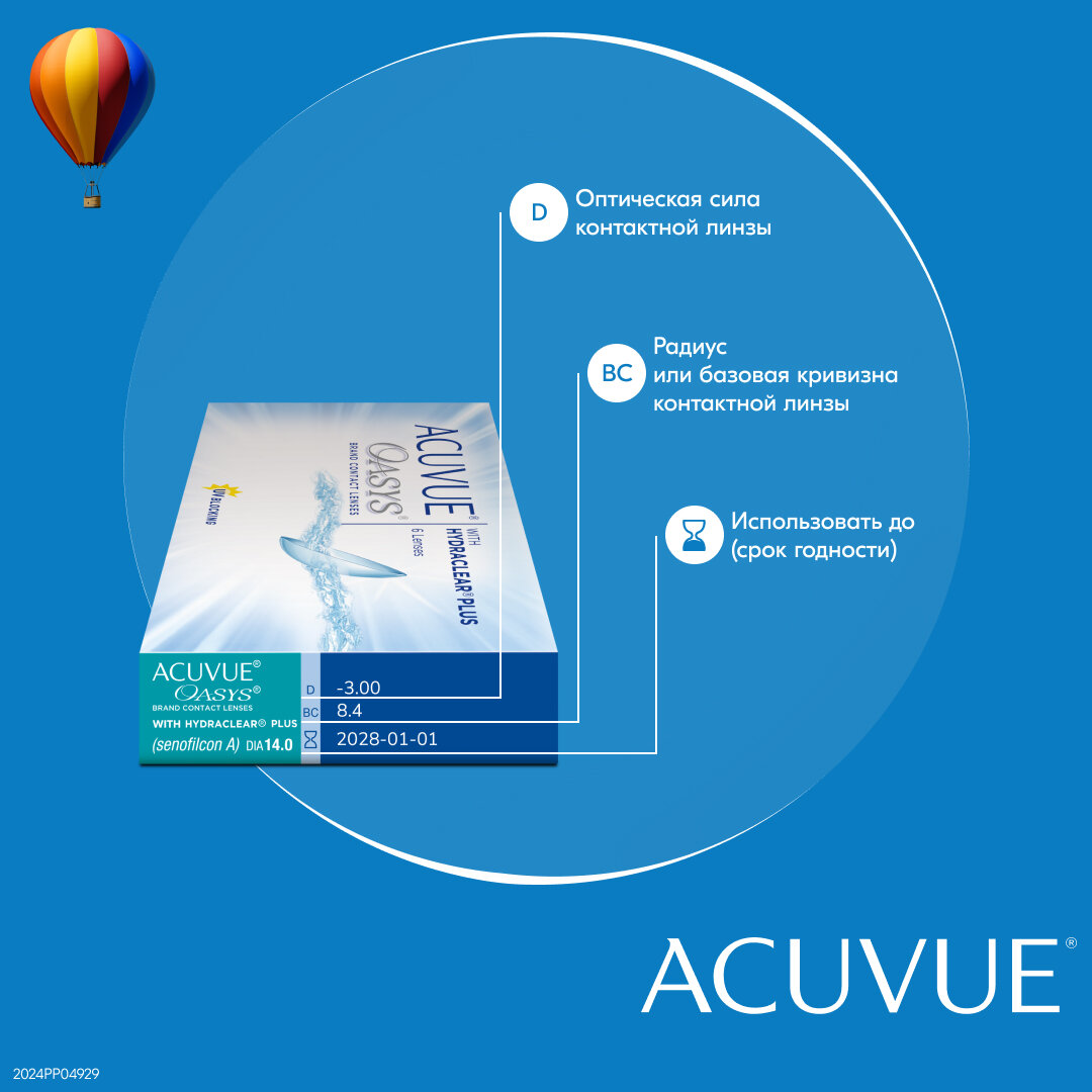 Контактные линзы ACUVUE OASYS with Hydraclear Plus (6 линз) +3.50 R 8.4, двухнедельные, прозрачные