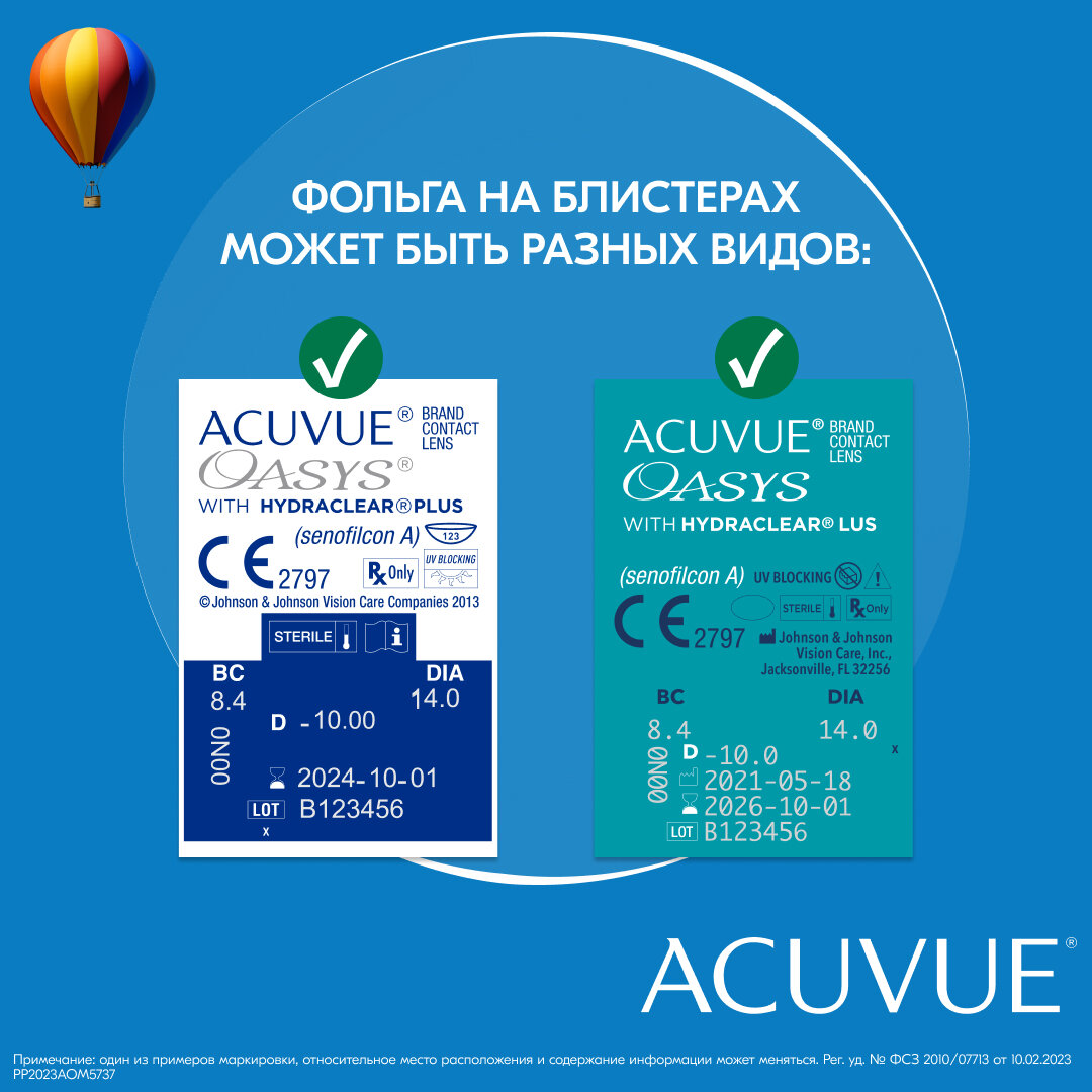 Контактные линзы Acuvue OASYS with Hydraclear Plus, 6 шт., R 8,4, D -9.50