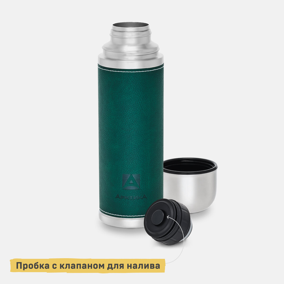 Термос Арктика 108-1000-GN с узким горлом в кожаной оплетке зеленый [1 л. / ]