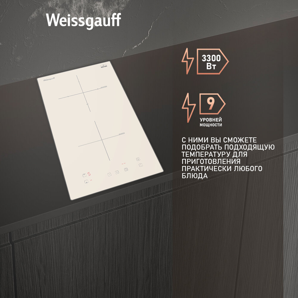 Варочные поверхности Индукционная варочная панель Weissgauff HI 32 G,3 года гарантии, технология непрерывного нагрева, 30 см ширина