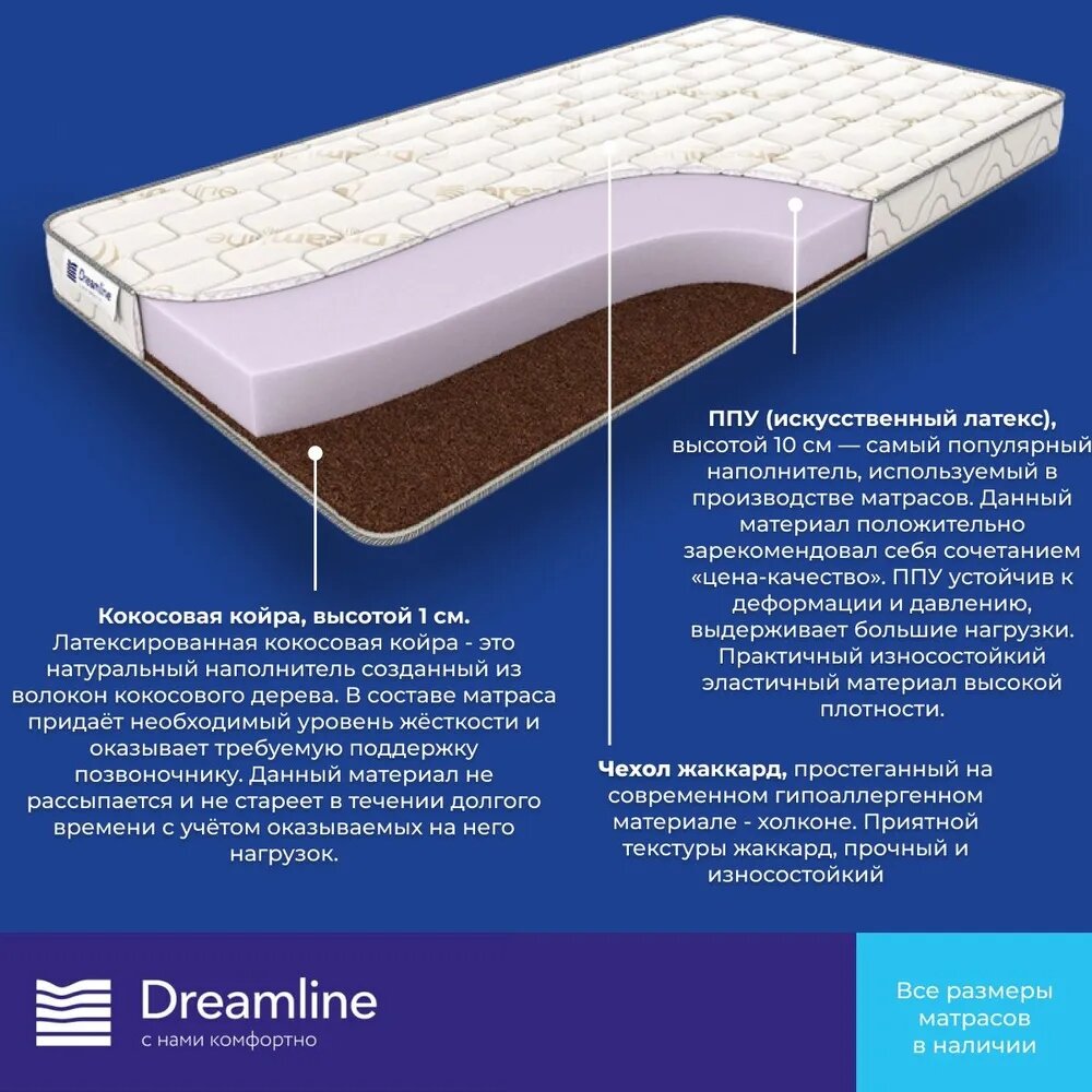 Матрас Dreamline Foam roll cocos 11 пружинный 90х195 см 10 196 ₽ Подробнее