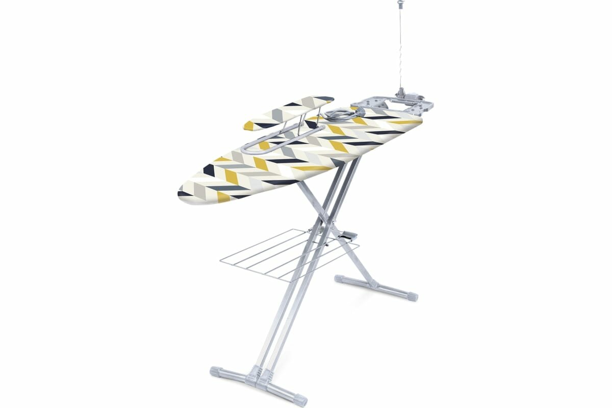 | Функции и возможности | подставка для утюга, регулировка высоты, подрукавник, полка для белья, держатель для вешалок, встроенная розетка, держатель провода |