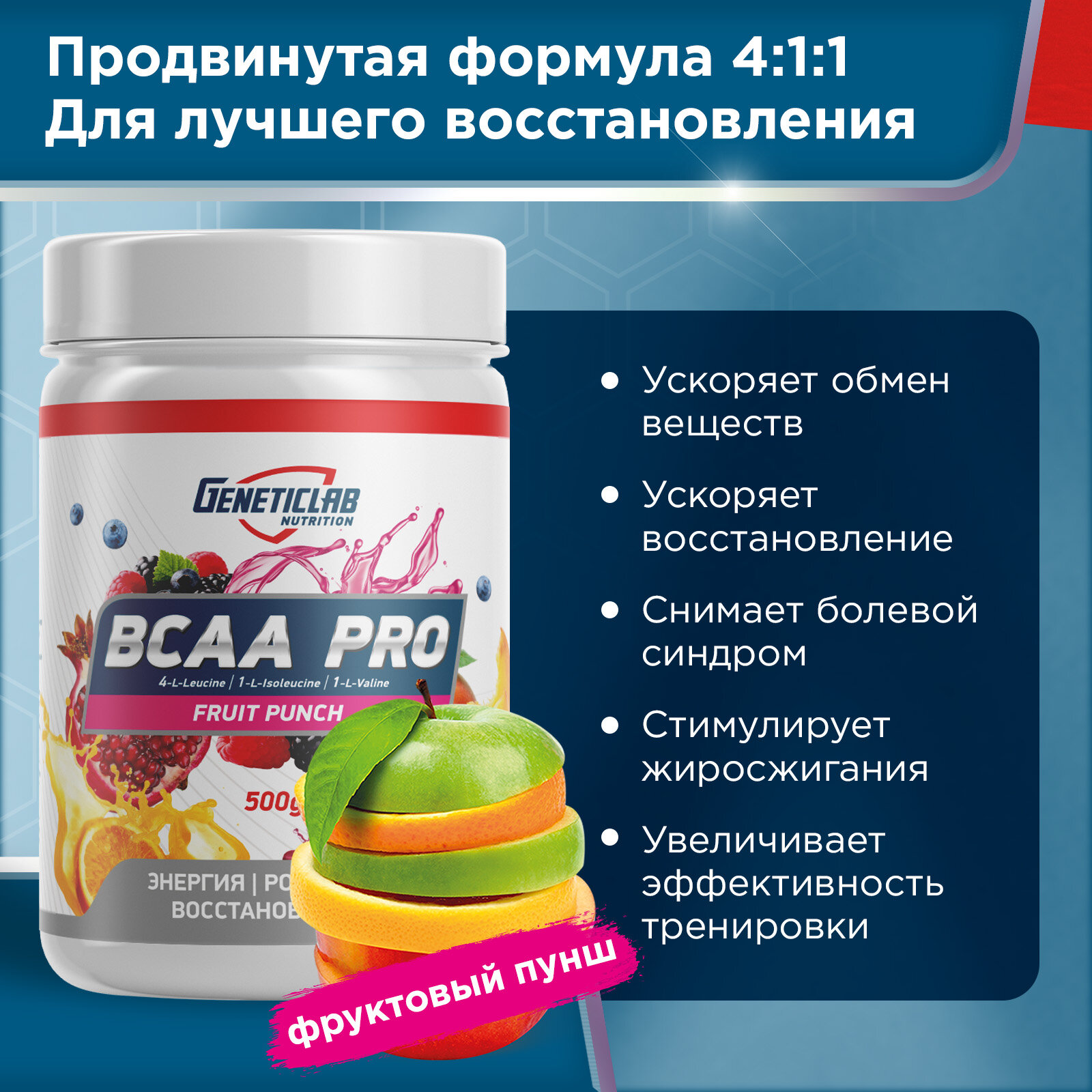 GeneticLab Nutrition BCAA Pro 4:1:1 (250г) Фруктовый пунш 832 ₽ Подробнее
