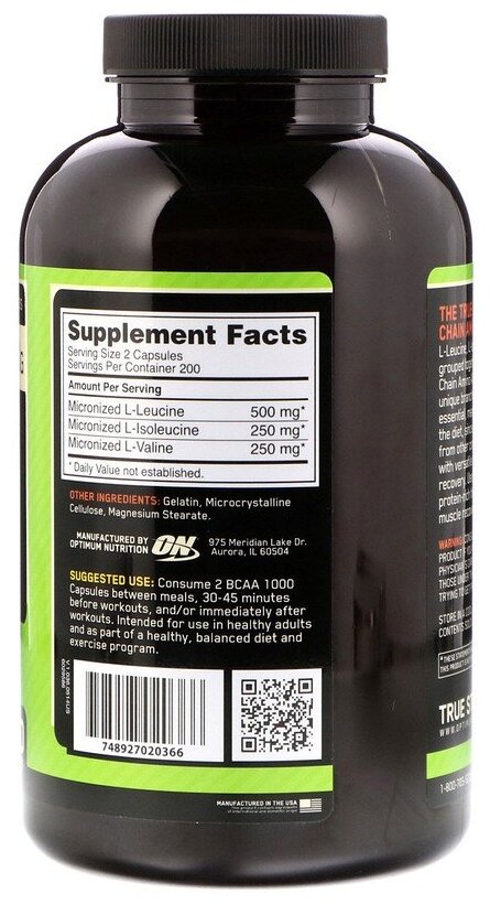 Бсаа OPTIMUM NUTRITION BCAA 1000 200 капсул