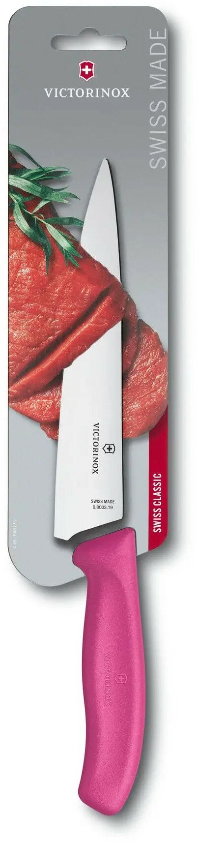 Нож Victorinox разделочный, лезвие 19 см, розовый, в картонном блистере