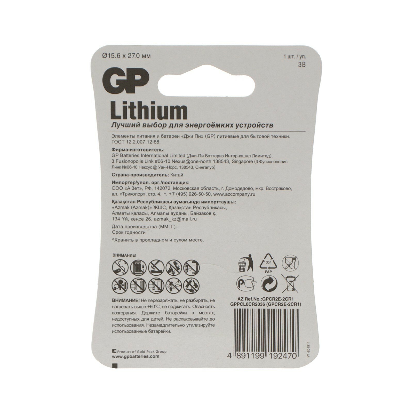 Аккумуляторы и батарейки Батарейка GP Lithium CR2E, литиевая, 1 шт., блистер, 3В, CR2E-2CR1
