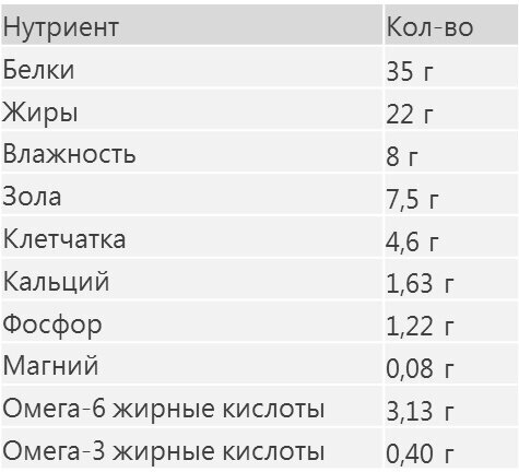 | Ингредиенты | рыбная мука, кукурузный белок, свиной жир, кукуруза, пшеница, рис |