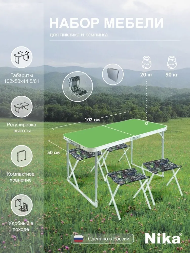 Стол туристический ССТ-К2 пластик + 4 стула Стол туристический, нагрузка на стол 20кг, на стул 90кг.Принт с дубовыми листьями НИКА ССТ-К2/6 4 990 ₽ Подробнее