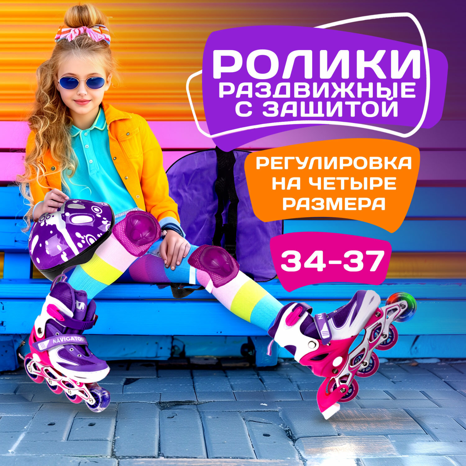Роликовые коньки NAVIGATOR в комплекте с защитой и шлемом, светящееся колесо, красный, L (38-41) 2 050 ₽ Подробнее